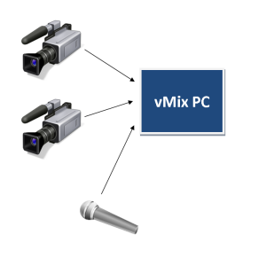 In the diagram above, all audio sources such as Microphones and Cameras run directly into vMix.