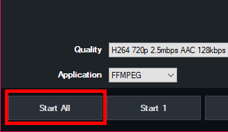 Alternatively click Start All / Stop All in the streaming settings window.