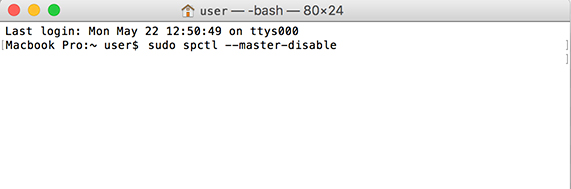 Under the General tab, click the lock to make changes. Then under the section "Allow apps downloaded from:" tick the radio checkbox for Anywhere. Then click the lock to save changes.