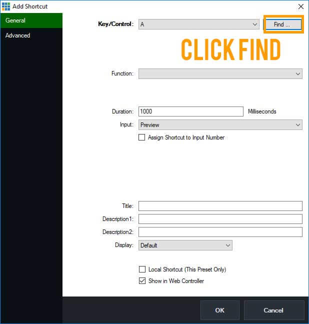 Ok, so let's head to vMix! You'll need to go to Settings -> Shortcuts and then add a shortcut.