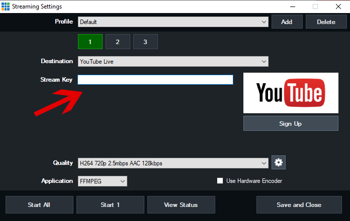 7. Click Save and Close to save your YouTube Stream settings