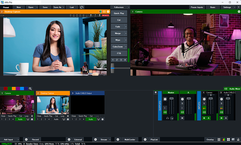 Now that our Teams video and audio is in vMix, we can use it as part of our production.