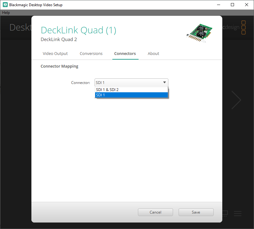 3. Under the tab named Connector the Connector should show SDI 1 & SDI 2 by default. Change this to SDI 1.